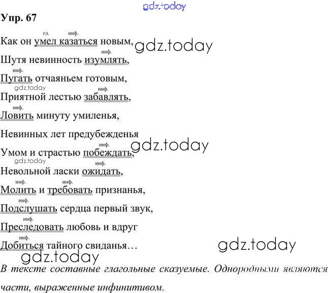 На страницах сайта gdz.today вы найдете учебный и вспомогательный материал, направленный на улучшения знаний школьной программы. ГДЗ - онлайн мир знаний Упражнения Часть 2 (решение) 67 Учебнику по Русскому языку для 8 класса Быстрова, Кибирева Русское слово Инновационная школа 2019