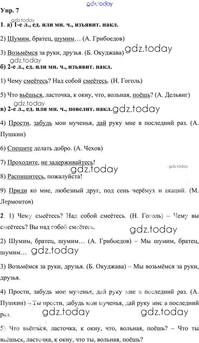 На страницах сайта gdz.today вы найдете учебный и вспомогательный материал, направленный на улучшения знаний школьной программы. ГДЗ - онлайн мир знаний Упражнения Часть 2 (решение) 7 Учебнику по Русскому языку для 8 класса Быстрова, Кибирева Русское слово Инновационная школа 2019