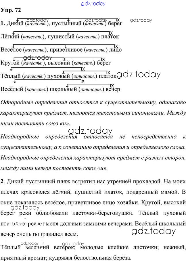 На страницах сайта gdz.today вы найдете учебный и вспомогательный материал, направленный на улучшения знаний школьной программы. ГДЗ - онлайн мир знаний Упражнения Часть 2 (решение) 72 Учебнику по Русскому языку для 8 класса Быстрова, Кибирева Русское слово Инновационная школа 2019