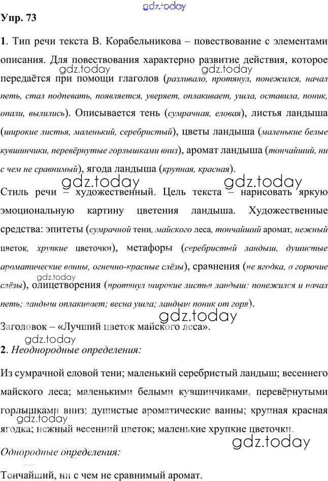 На страницах сайта gdz.today вы найдете учебный и вспомогательный материал, направленный на улучшения знаний школьной программы. ГДЗ - онлайн мир знаний Упражнения Часть 2 (решение) 73 Учебнику по Русскому языку для 8 класса Быстрова, Кибирева Русское слово Инновационная школа 2019