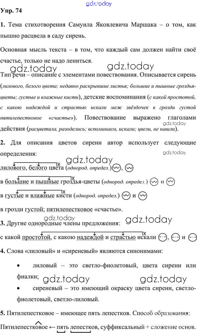 На страницах сайта gdz.today вы найдете учебный и вспомогательный материал, направленный на улучшения знаний школьной программы. ГДЗ - онлайн мир знаний Упражнения Часть 2 (решение) 74 Учебнику по Русскому языку для 8 класса Быстрова, Кибирева Русское слово Инновационная школа 2019