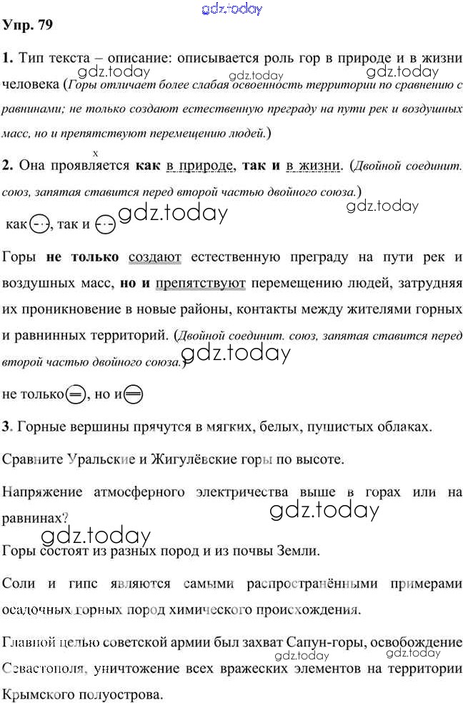На страницах сайта gdz.today вы найдете учебный и вспомогательный материал, направленный на улучшения знаний школьной программы. ГДЗ - онлайн мир знаний Упражнения Часть 2 (решение) 79 Учебнику по Русскому языку для 8 класса Быстрова, Кибирева Русское слово Инновационная школа 2019