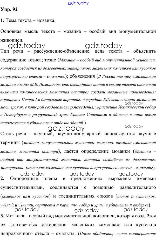 На страницах сайта gdz.today вы найдете учебный и вспомогательный материал, направленный на улучшения знаний школьной программы. ГДЗ - онлайн мир знаний Упражнения Часть 2 (решение) 92 Учебнику по Русскому языку для 8 класса Быстрова, Кибирева Русское слово Инновационная школа 2019