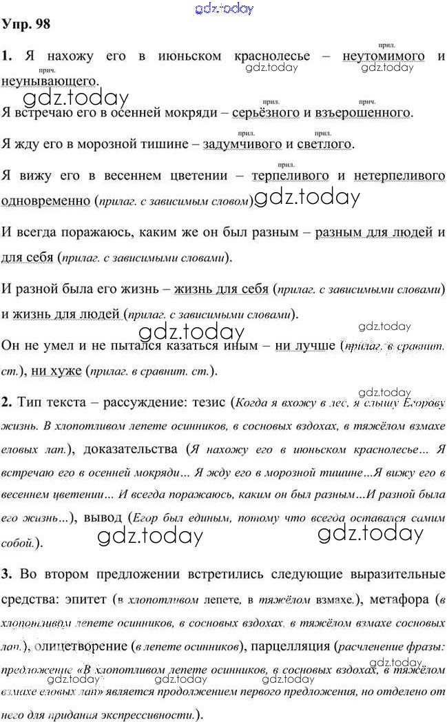 На страницах сайта gdz.today вы найдете учебный и вспомогательный материал, направленный на улучшения знаний школьной программы. ГДЗ - онлайн мир знаний Упражнения Часть 2 (решение) 98 Учебнику по Русскому языку для 8 класса Быстрова, Кибирева Русское слово Инновационная школа 2019