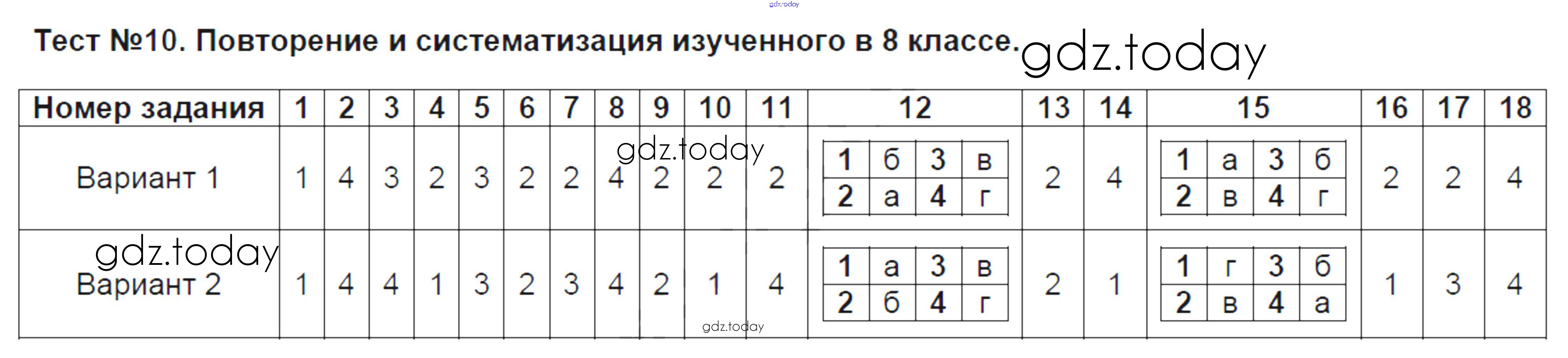 Ответы к Решение к тестам Тест №10. Повторение и систематизация изученного в 8 классе Тематическим тестам по Русскому языку для 8 класса Клевцова, Шубукина Просвещение УМК 2018