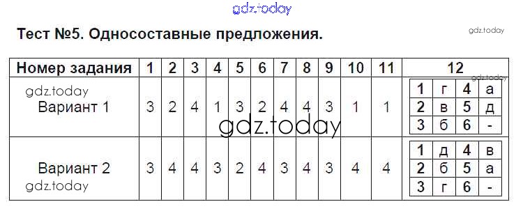 На страницах сайта gdz.today вы найдете учебный и вспомогательный материал, направленный на улучшения знаний школьной программы. ГДЗ - онлайн мир знаний Решение к тестам Тест №5. Односоставные предложения Тематическим тестам по Русскому языку для 8 класса Клевцова, Шубукина Просвещение УМК 2018