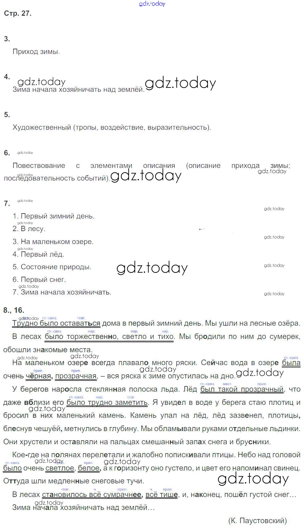 На страницах сайта gdz.today вы найдете учебный и вспомогательный материал, направленный на улучшения знаний школьной программы. ГДЗ - онлайн мир знаний Страницы (решение) 27 Комплексному анализу текста (Рабочей тетради) по Русскому языку для 8 класса Малюшкин Сфера 2018