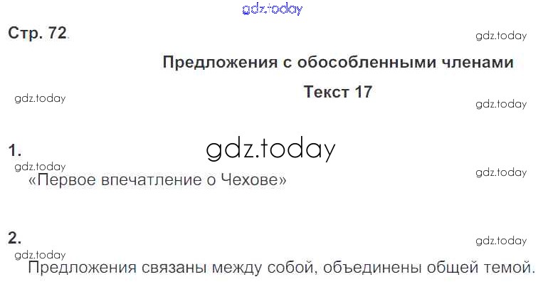 На страницах сайта gdz.today вы найдете учебный и вспомогательный материал, направленный на улучшения знаний школьной программы. ГДЗ - онлайн мир знаний Страницы (решение) 72 Комплексному анализу текста (Рабочей тетради) по Русскому языку для 8 класса Малюшкин Сфера 2018