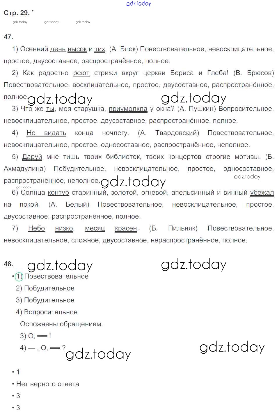 Ответы к Страницы (решение) 29 Рабочей тетради по Русскому языку для 8 класса Литвинова Дрофа Вертикаль 2017