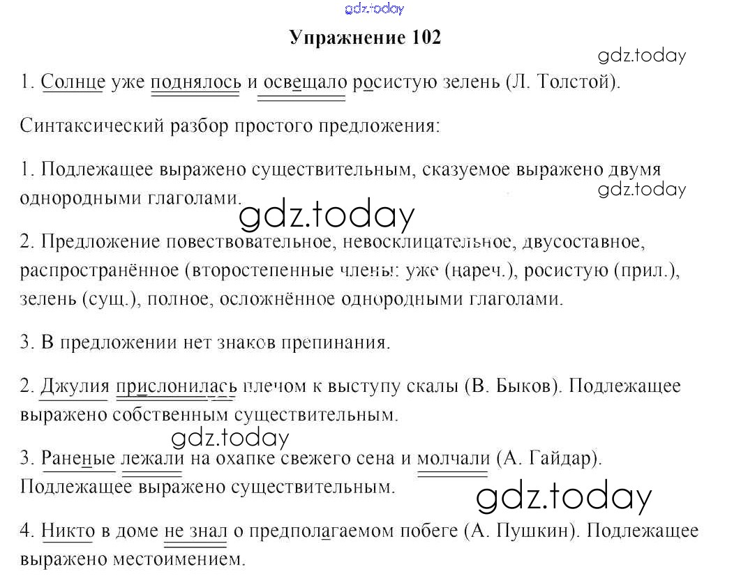 На страницах сайта gdz.today вы найдете учебный и вспомогательный материал, направленный на улучшения знаний школьной программы. ГДЗ - онлайн мир знаний Решение к заданиям 102 Учебнику по Русскому языку для 8 класса Мурина, Игнатович Национальный институт образования 2018