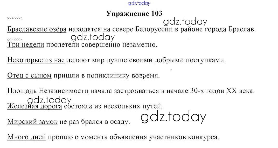 На страницах сайта gdz.today вы найдете учебный и вспомогательный материал, направленный на улучшения знаний школьной программы. ГДЗ - онлайн мир знаний Решение к заданиям 103 Учебнику по Русскому языку для 8 класса Мурина, Игнатович Национальный институт образования 2018