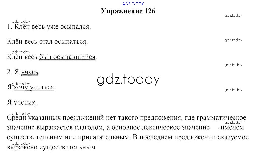 На страницах сайта gdz.today вы найдете учебный и вспомогательный материал, направленный на улучшения знаний школьной программы. ГДЗ - онлайн мир знаний Решение к заданиям 126 Учебнику по Русскому языку для 8 класса Мурина, Игнатович Национальный институт образования 2018