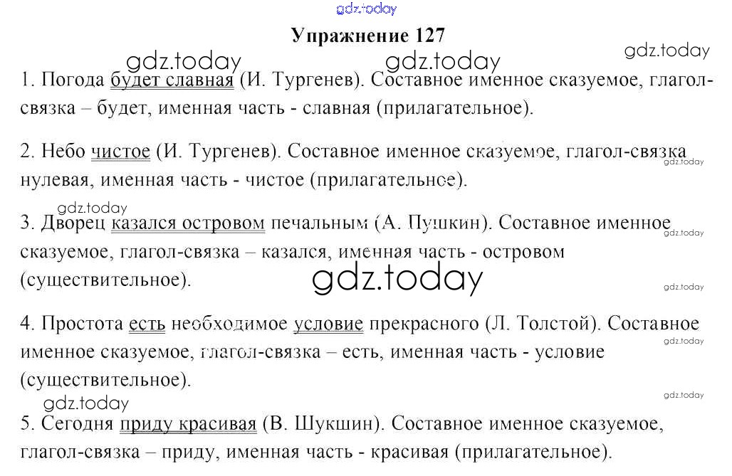 На страницах сайта gdz.today вы найдете учебный и вспомогательный материал, направленный на улучшения знаний школьной программы. ГДЗ - онлайн мир знаний Решение к заданиям 127 Учебнику по Русскому языку для 8 класса Мурина, Игнатович Национальный институт образования 2018
