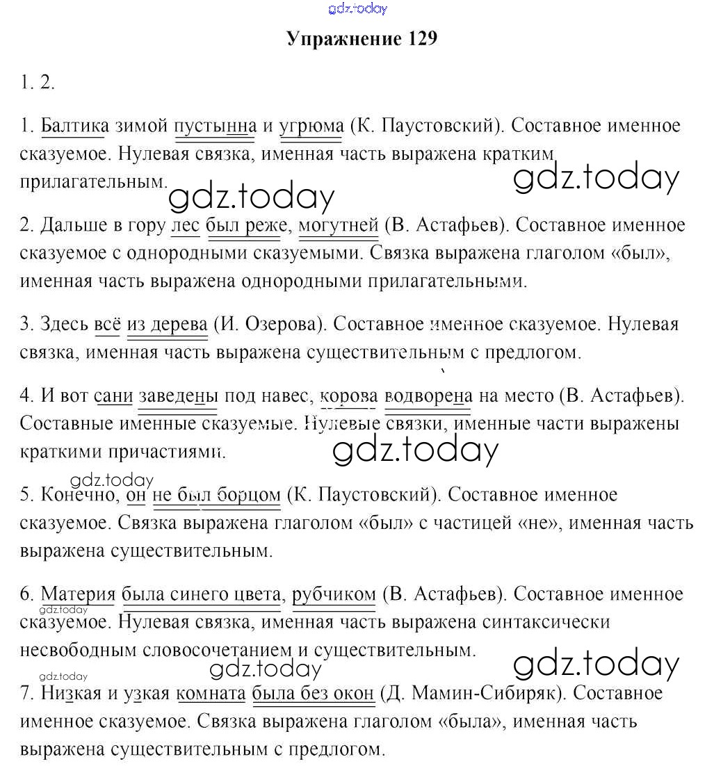 На страницах сайта gdz.today вы найдете учебный и вспомогательный материал, направленный на улучшения знаний школьной программы. ГДЗ - онлайн мир знаний Решение к заданиям 129 Учебнику по Русскому языку для 8 класса Мурина, Игнатович Национальный институт образования 2018