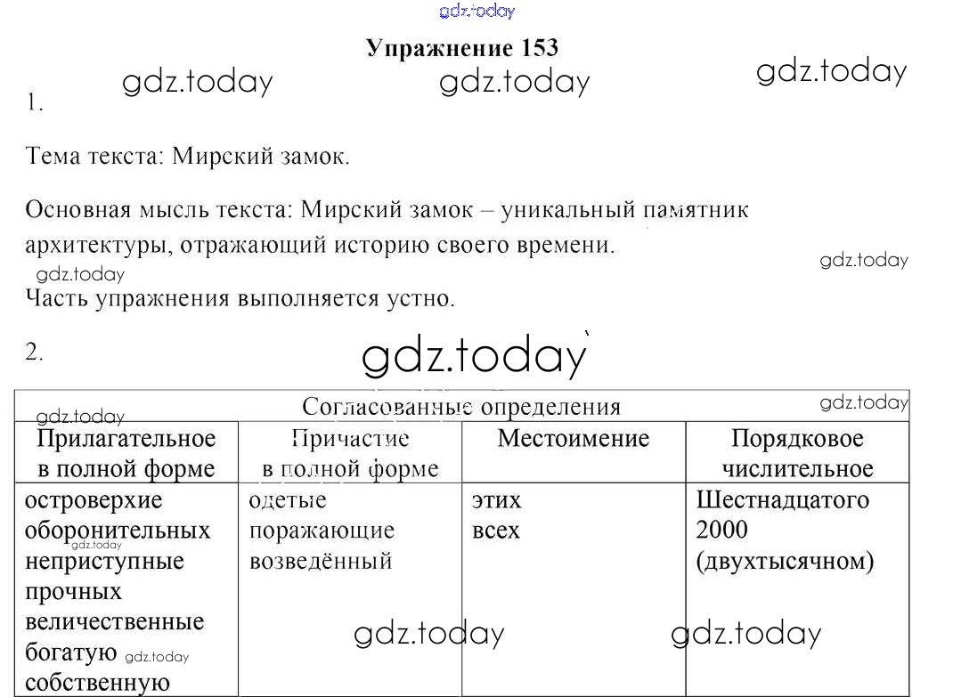 На страницах сайта gdz.today вы найдете учебный и вспомогательный материал, направленный на улучшения знаний школьной программы. ГДЗ - онлайн мир знаний Решение к заданиям 153 Учебнику по Русскому языку для 8 класса Мурина, Игнатович Национальный институт образования 2018