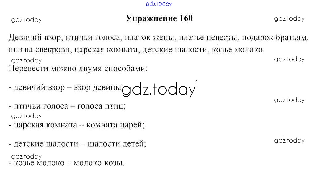 На страницах сайта gdz.today вы найдете учебный и вспомогательный материал, направленный на улучшения знаний школьной программы. ГДЗ - онлайн мир знаний Решение к заданиям 160 Учебнику по Русскому языку для 8 класса Мурина, Игнатович Национальный институт образования 2018