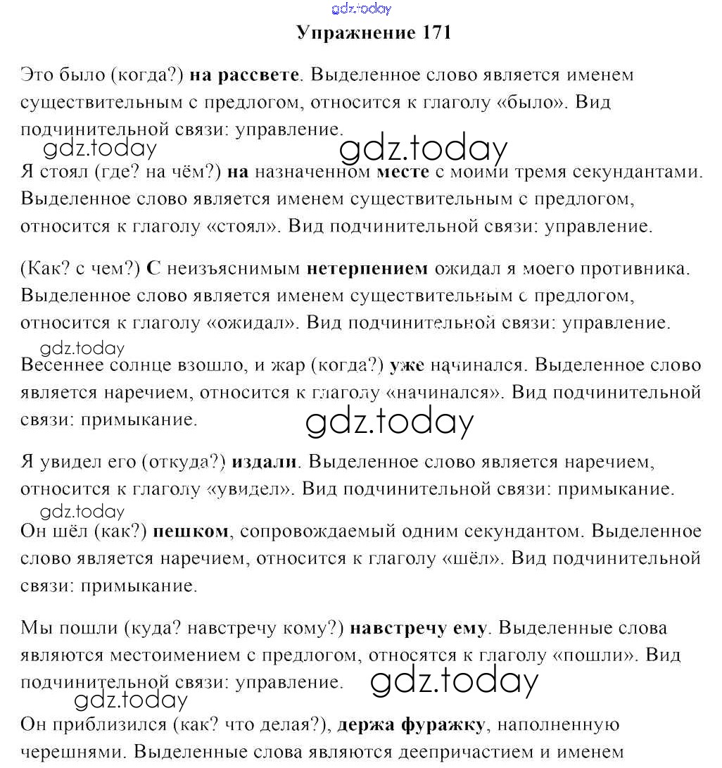 На страницах сайта gdz.today вы найдете учебный и вспомогательный материал, направленный на улучшения знаний школьной программы. ГДЗ - онлайн мир знаний Решение к заданиям 171 Учебнику по Русскому языку для 8 класса Мурина, Игнатович Национальный институт образования 2018