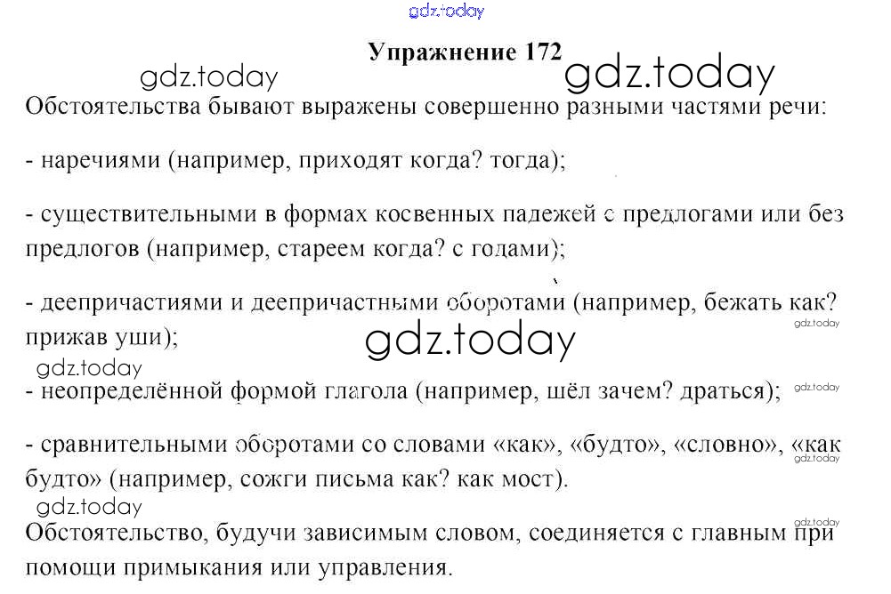 На страницах сайта gdz.today вы найдете учебный и вспомогательный материал, направленный на улучшения знаний школьной программы. ГДЗ - онлайн мир знаний Решение к заданиям 172 Учебнику по Русскому языку для 8 класса Мурина, Игнатович Национальный институт образования 2018