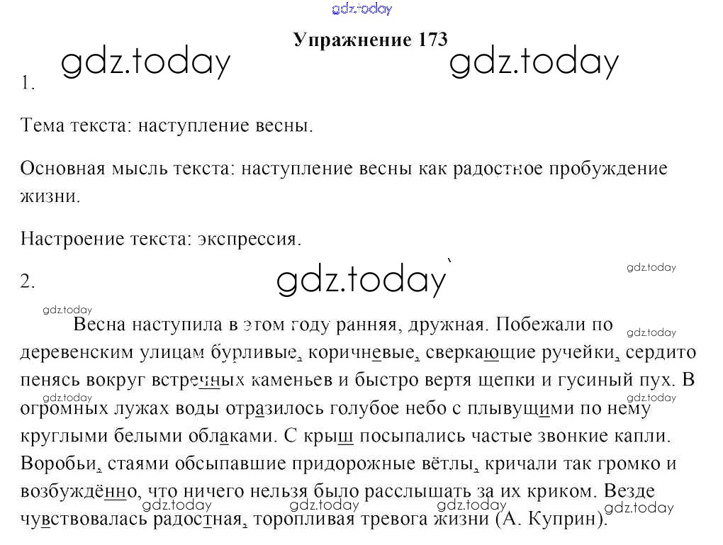 На страницах сайта gdz.today вы найдете учебный и вспомогательный материал, направленный на улучшения знаний школьной программы. ГДЗ - онлайн мир знаний Решение к заданиям 173 Учебнику по Русскому языку для 8 класса Мурина, Игнатович Национальный институт образования 2018