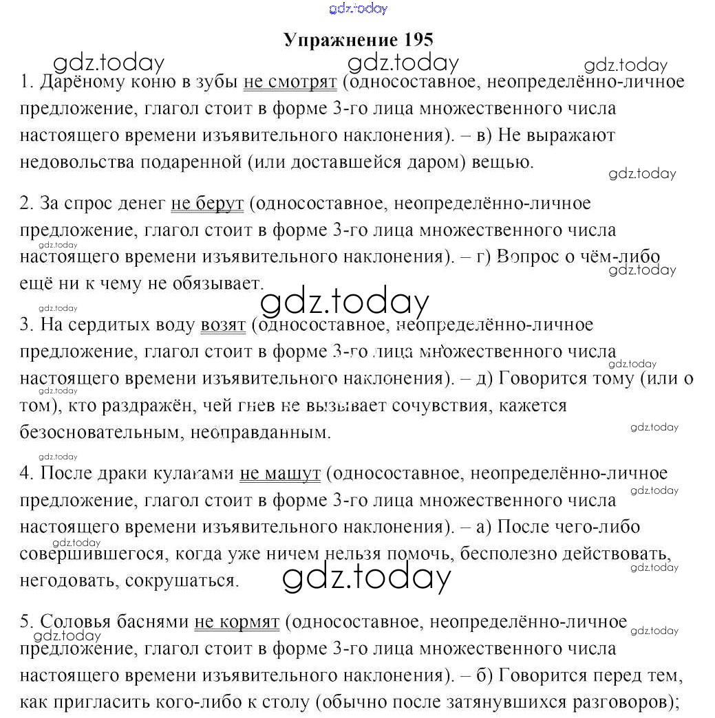 На страницах сайта gdz.today вы найдете учебный и вспомогательный материал, направленный на улучшения знаний школьной программы. ГДЗ - онлайн мир знаний Решение к заданиям 195 Учебнику по Русскому языку для 8 класса Мурина, Игнатович Национальный институт образования 2018
