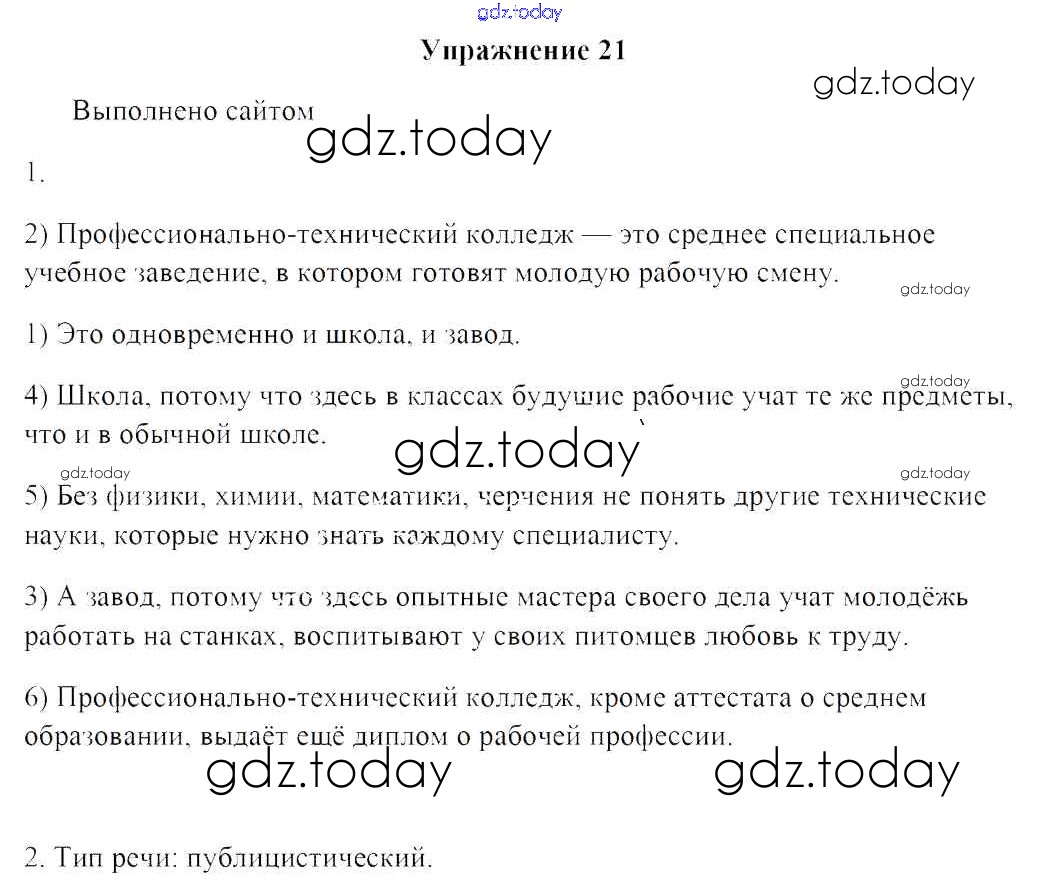 На страницах сайта gdz.today вы найдете учебный и вспомогательный материал, направленный на улучшения знаний школьной программы. ГДЗ - онлайн мир знаний Решение к заданиям 21 Учебнику по Русскому языку для 8 класса Мурина, Игнатович Национальный институт образования 2018
