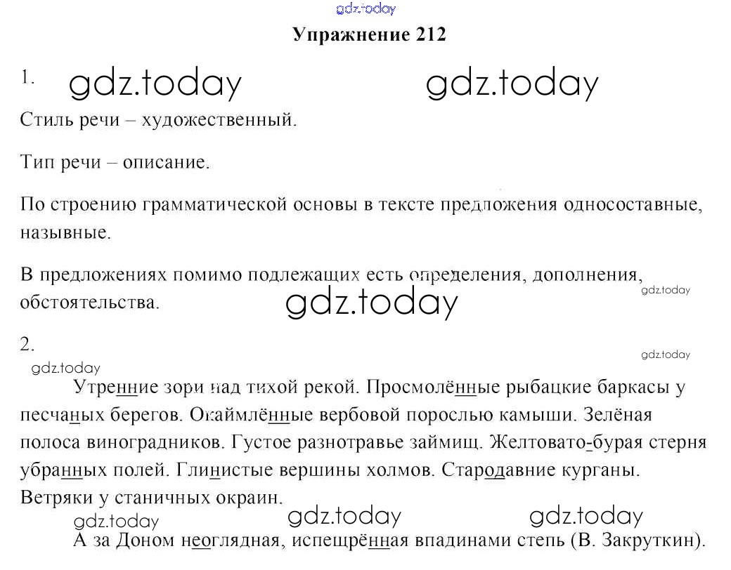 На страницах сайта gdz.today вы найдете учебный и вспомогательный материал, направленный на улучшения знаний школьной программы. ГДЗ - онлайн мир знаний Решение к заданиям 212 Учебнику по Русскому языку для 8 класса Мурина, Игнатович Национальный институт образования 2018
