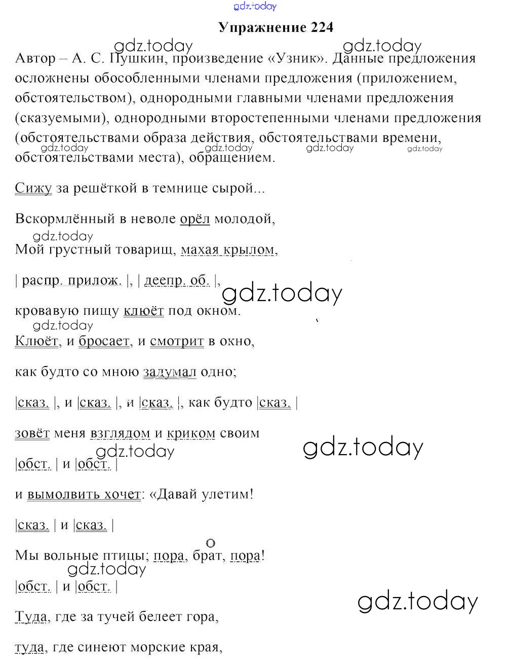 На страницах сайта gdz.today вы найдете учебный и вспомогательный материал, направленный на улучшения знаний школьной программы. ГДЗ - онлайн мир знаний Решение к заданиям 224 Учебнику по Русскому языку для 8 класса Мурина, Игнатович Национальный институт образования 2018