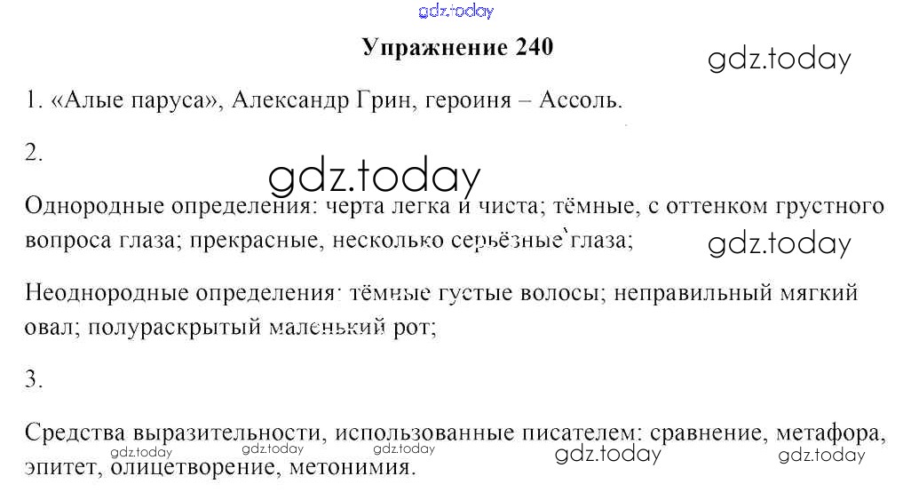 На страницах сайта gdz.today вы найдете учебный и вспомогательный материал, направленный на улучшения знаний школьной программы. ГДЗ - онлайн мир знаний Решение к заданиям 240 Учебнику по Русскому языку для 8 класса Мурина, Игнатович Национальный институт образования 2018