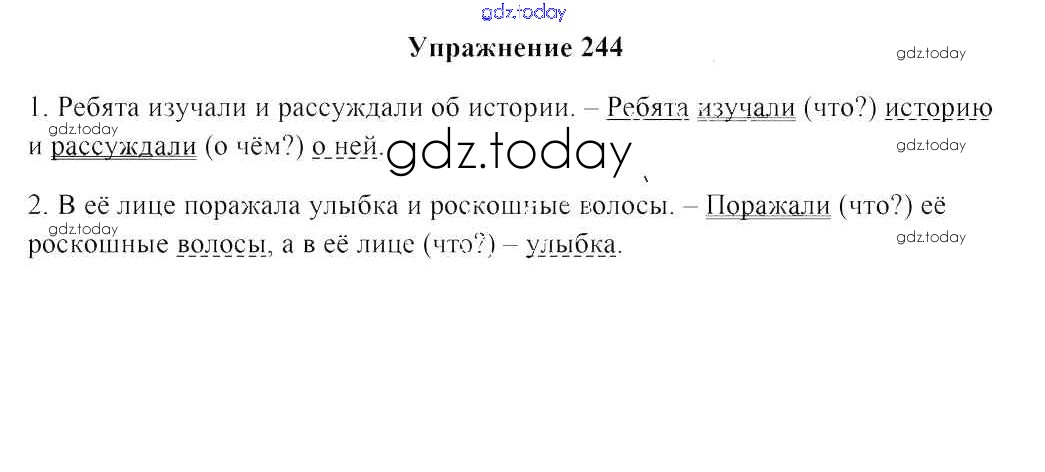 На страницах сайта gdz.today вы найдете учебный и вспомогательный материал, направленный на улучшения знаний школьной программы. ГДЗ - онлайн мир знаний Решение к заданиям 244 Учебнику по Русскому языку для 8 класса Мурина, Игнатович Национальный институт образования 2018