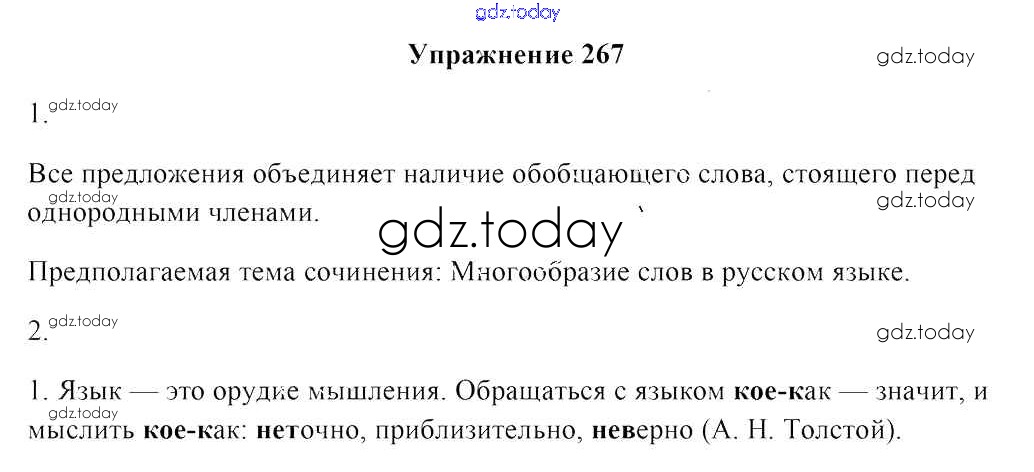 На страницах сайта gdz.today вы найдете учебный и вспомогательный материал, направленный на улучшения знаний школьной программы. ГДЗ - онлайн мир знаний Решение к заданиям 267 Учебнику по Русскому языку для 8 класса Мурина, Игнатович Национальный институт образования 2018