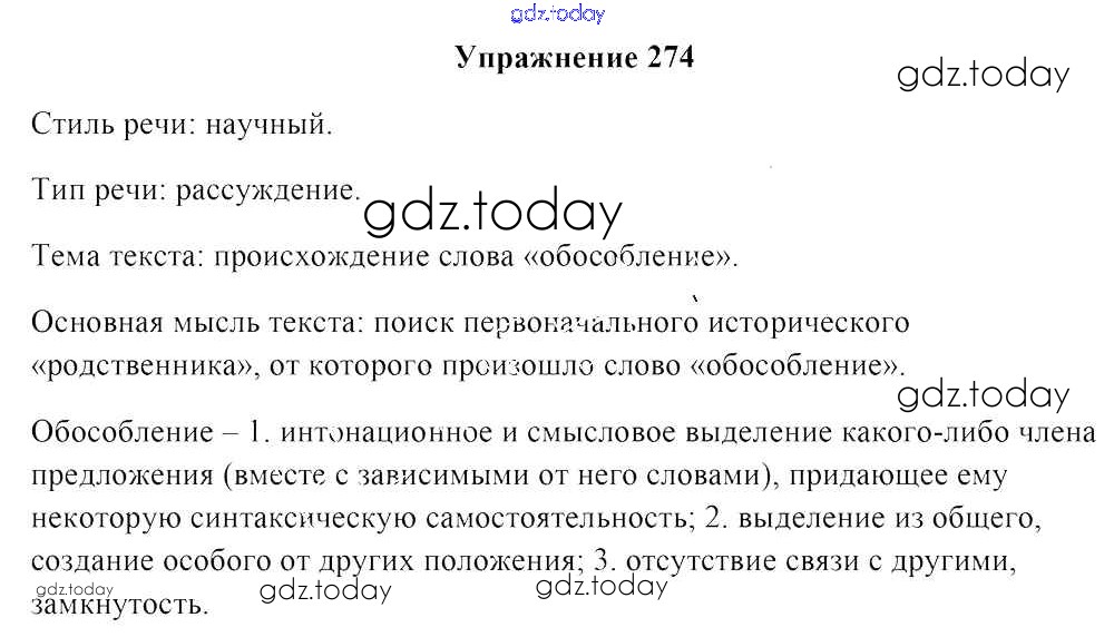 На страницах сайта gdz.today вы найдете учебный и вспомогательный материал, направленный на улучшения знаний школьной программы. ГДЗ - онлайн мир знаний Решение к заданиям 274 Учебнику по Русскому языку для 8 класса Мурина, Игнатович Национальный институт образования 2018
