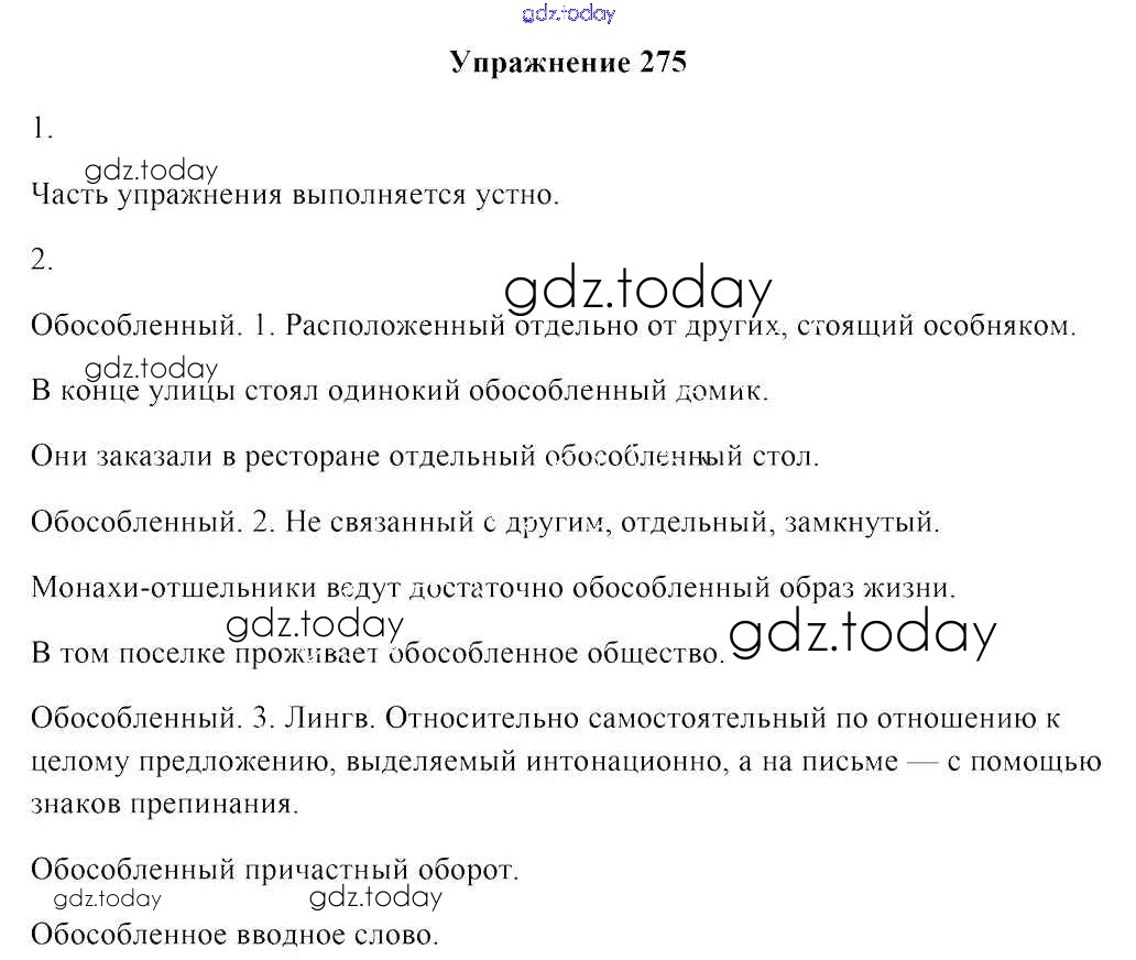 На страницах сайта gdz.today вы найдете учебный и вспомогательный материал, направленный на улучшения знаний школьной программы. ГДЗ - онлайн мир знаний Решение к заданиям 275 Учебнику по Русскому языку для 8 класса Мурина, Игнатович Национальный институт образования 2018