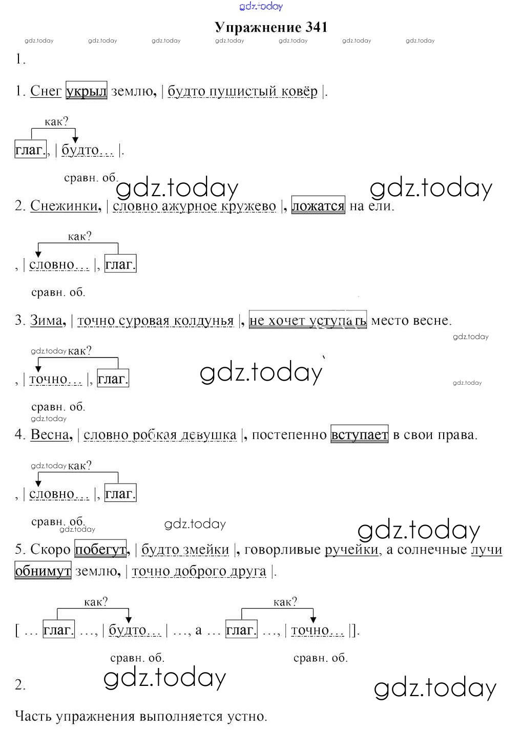 На страницах сайта gdz.today вы найдете учебный и вспомогательный материал, направленный на улучшения знаний школьной программы. ГДЗ - онлайн мир знаний Решение к заданиям 341 Учебнику по Русскому языку для 8 класса Мурина, Игнатович Национальный институт образования 2018