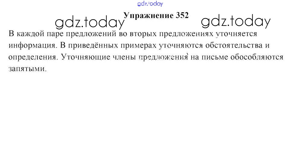 На страницах сайта gdz.today вы найдете учебный и вспомогательный материал, направленный на улучшения знаний школьной программы. ГДЗ - онлайн мир знаний Решение к заданиям 352 Учебнику по Русскому языку для 8 класса Мурина, Игнатович Национальный институт образования 2018