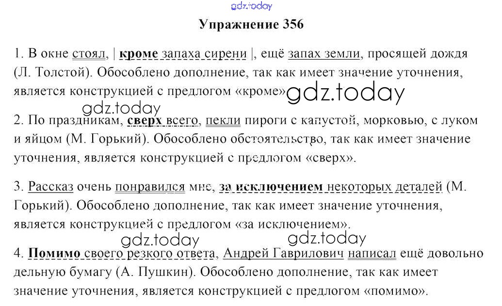 На страницах сайта gdz.today вы найдете учебный и вспомогательный материал, направленный на улучшения знаний школьной программы. ГДЗ - онлайн мир знаний Решение к заданиям 356 Учебнику по Русскому языку для 8 класса Мурина, Игнатович Национальный институт образования 2018