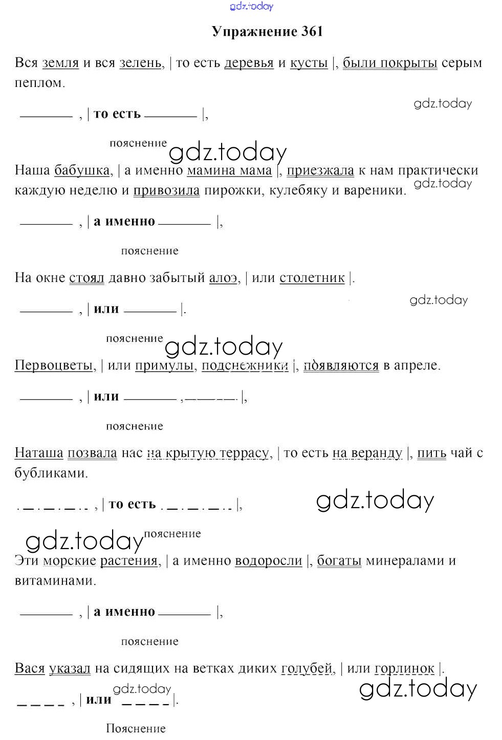 На страницах сайта gdz.today вы найдете учебный и вспомогательный материал, направленный на улучшения знаний школьной программы. ГДЗ - онлайн мир знаний Решение к заданиям 361 Учебнику по Русскому языку для 8 класса Мурина, Игнатович Национальный институт образования 2018