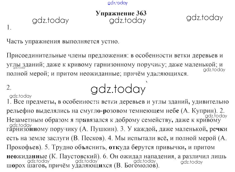 На страницах сайта gdz.today вы найдете учебный и вспомогательный материал, направленный на улучшения знаний школьной программы. ГДЗ - онлайн мир знаний Решение к заданиям 363 Учебнику по Русскому языку для 8 класса Мурина, Игнатович Национальный институт образования 2018