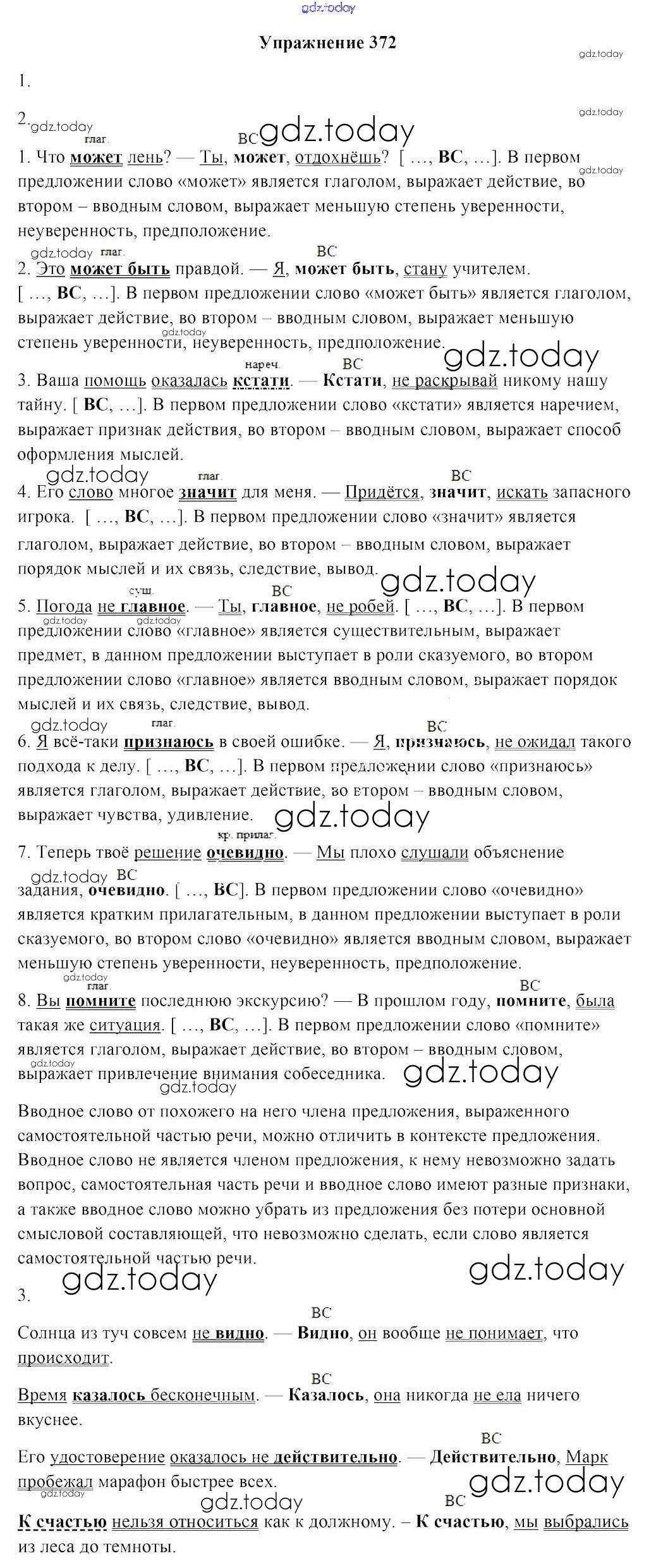 На страницах сайта gdz.today вы найдете учебный и вспомогательный материал, направленный на улучшения знаний школьной программы. ГДЗ - онлайн мир знаний Решение к заданиям 372 Учебнику по Русскому языку для 8 класса Мурина, Игнатович Национальный институт образования 2018