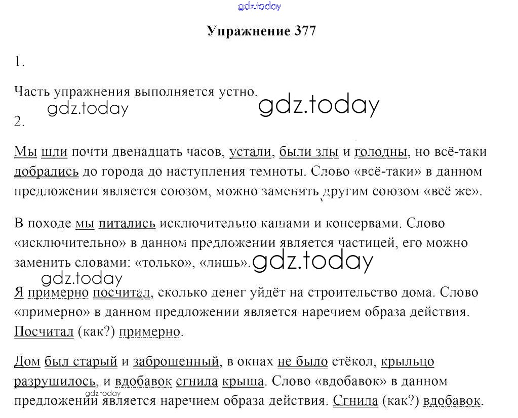 На страницах сайта gdz.today вы найдете учебный и вспомогательный материал, направленный на улучшения знаний школьной программы. ГДЗ - онлайн мир знаний Решение к заданиям 377 Учебнику по Русскому языку для 8 класса Мурина, Игнатович Национальный институт образования 2018