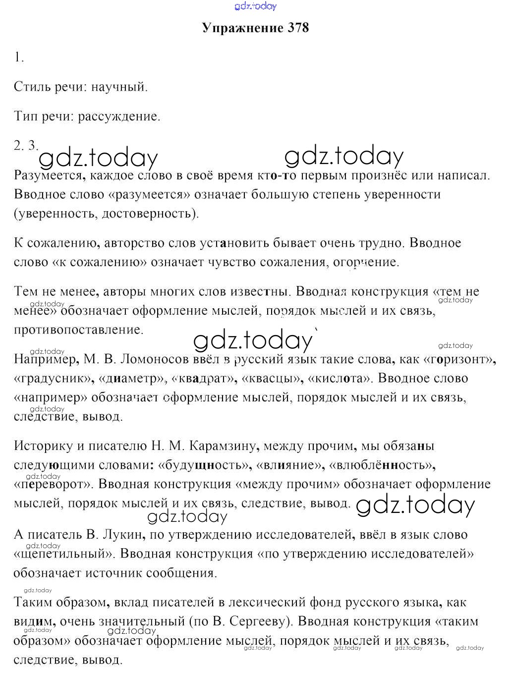 На страницах сайта gdz.today вы найдете учебный и вспомогательный материал, направленный на улучшения знаний школьной программы. ГДЗ - онлайн мир знаний Решение к заданиям 378 Учебнику по Русскому языку для 8 класса Мурина, Игнатович Национальный институт образования 2018
