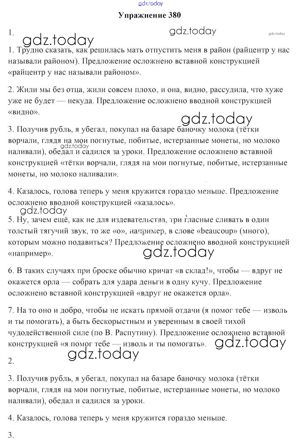 На страницах сайта gdz.today вы найдете учебный и вспомогательный материал, направленный на улучшения знаний школьной программы. ГДЗ - онлайн мир знаний Решение к заданиям 380 Учебнику по Русскому языку для 8 класса Мурина, Игнатович Национальный институт образования 2018