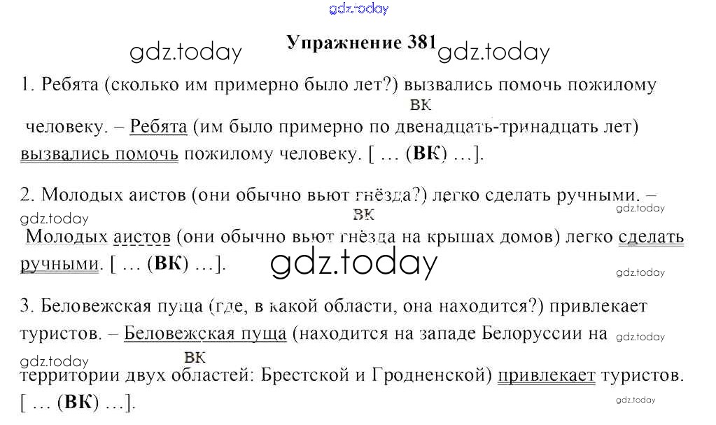 На страницах сайта gdz.today вы найдете учебный и вспомогательный материал, направленный на улучшения знаний школьной программы. ГДЗ - онлайн мир знаний Решение к заданиям 381 Учебнику по Русскому языку для 8 класса Мурина, Игнатович Национальный институт образования 2018