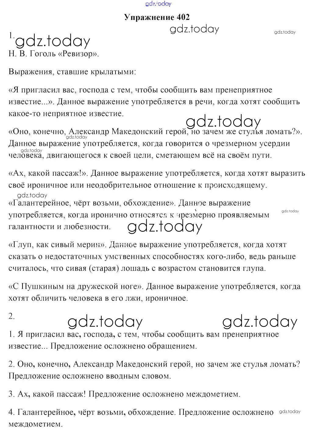 Ответы к Решение к заданиям 402 Учебнику по Русскому языку для 8 класса Мурина, Игнатович Национальный институт образования 2018