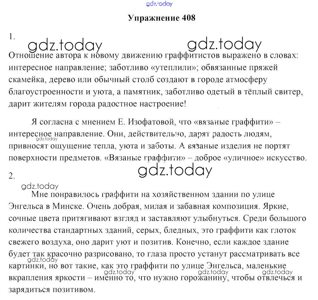 На страницах сайта gdz.today вы найдете учебный и вспомогательный материал, направленный на улучшения знаний школьной программы. ГДЗ - онлайн мир знаний Решение к заданиям 408 Учебнику по Русскому языку для 8 класса Мурина, Игнатович Национальный институт образования 2018