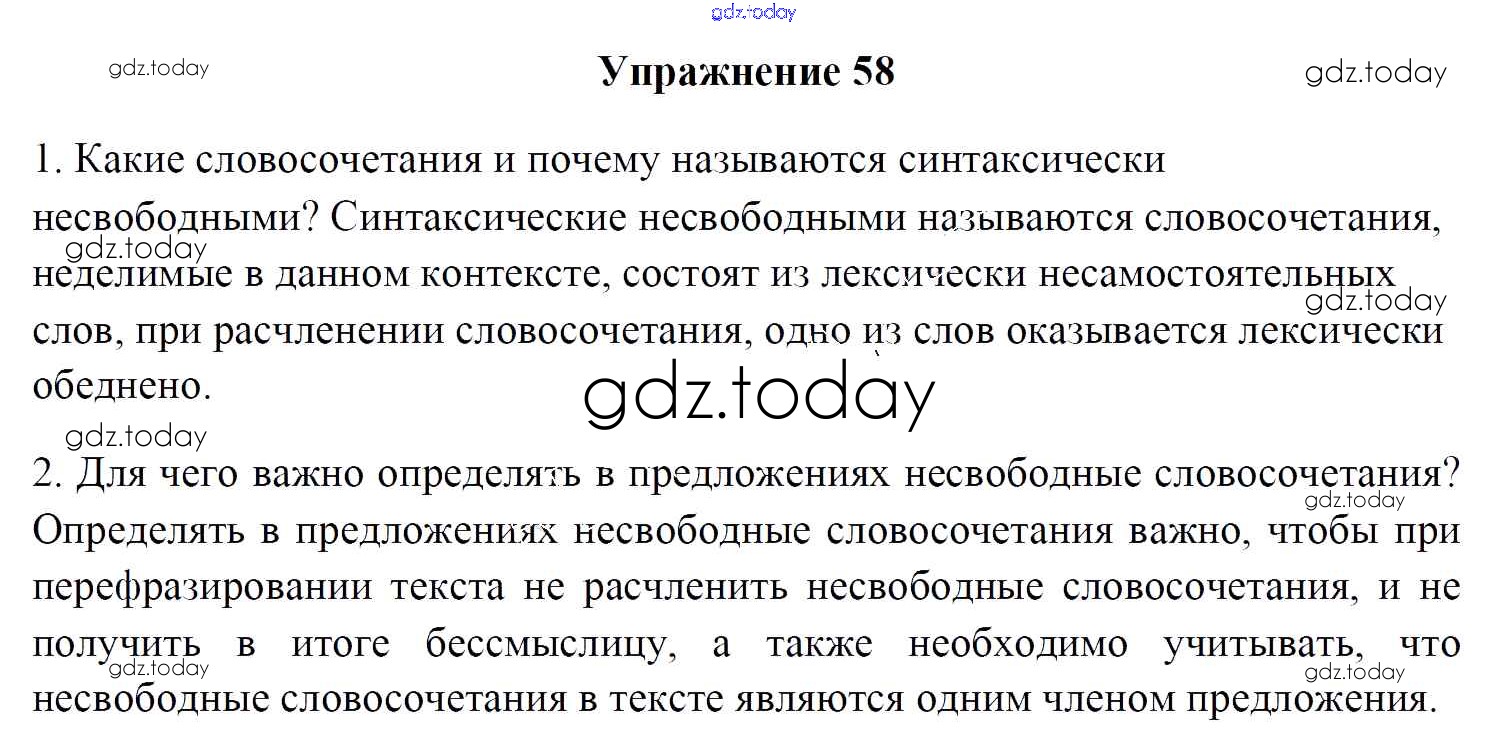 На страницах сайта gdz.today вы найдете учебный и вспомогательный материал, направленный на улучшения знаний школьной программы. ГДЗ - онлайн мир знаний Решение к заданиям 58 Учебнику по Русскому языку для 8 класса Мурина, Игнатович Национальный институт образования 2018