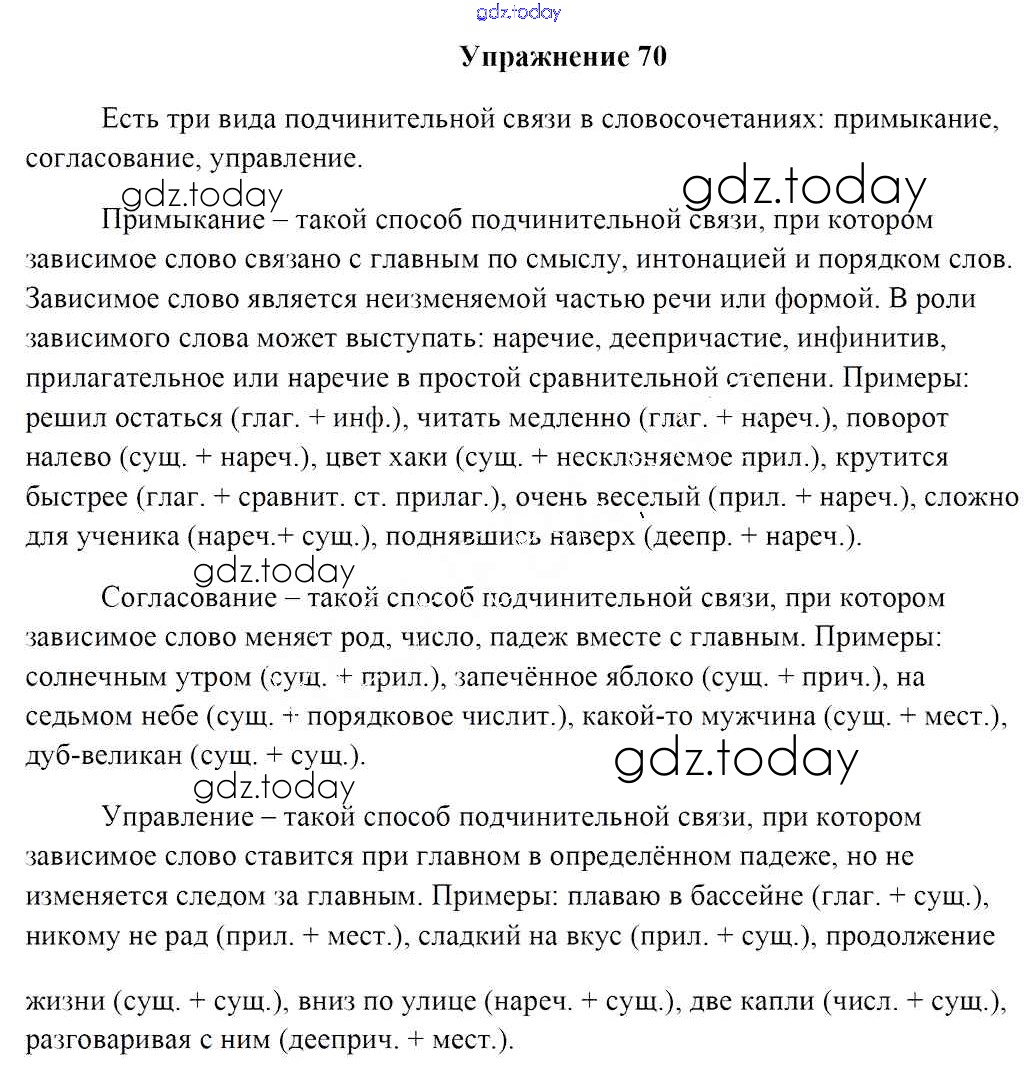 На страницах сайта gdz.today вы найдете учебный и вспомогательный материал, направленный на улучшения знаний школьной программы. ГДЗ - онлайн мир знаний Решение к заданиям 70 Учебнику по Русскому языку для 8 класса Мурина, Игнатович Национальный институт образования 2018