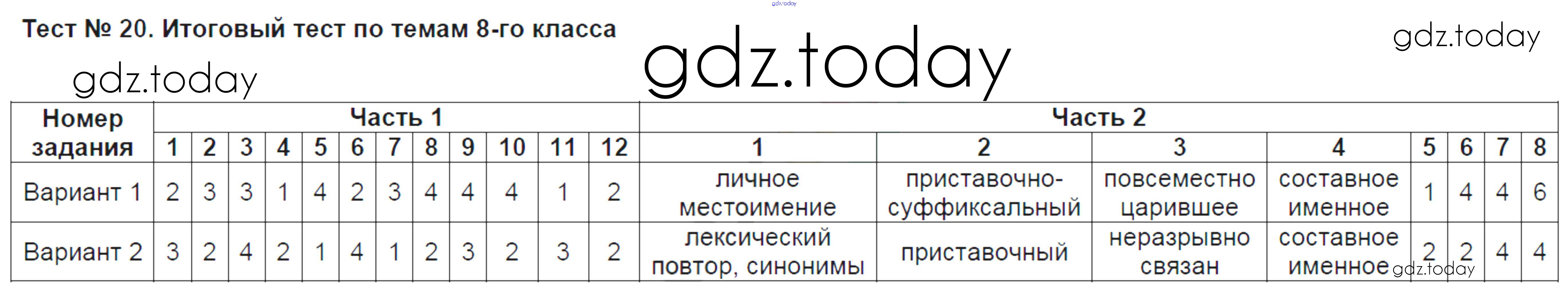 На страницах сайта gdz.today вы найдете учебный и вспомогательный материал, направленный на улучшения знаний школьной программы. ГДЗ - онлайн мир знаний Решение к тестам 20 Контрольно-измерительным материалам (КИМ) по Русскому языку для 8 класса Никулина Экзамен 2015