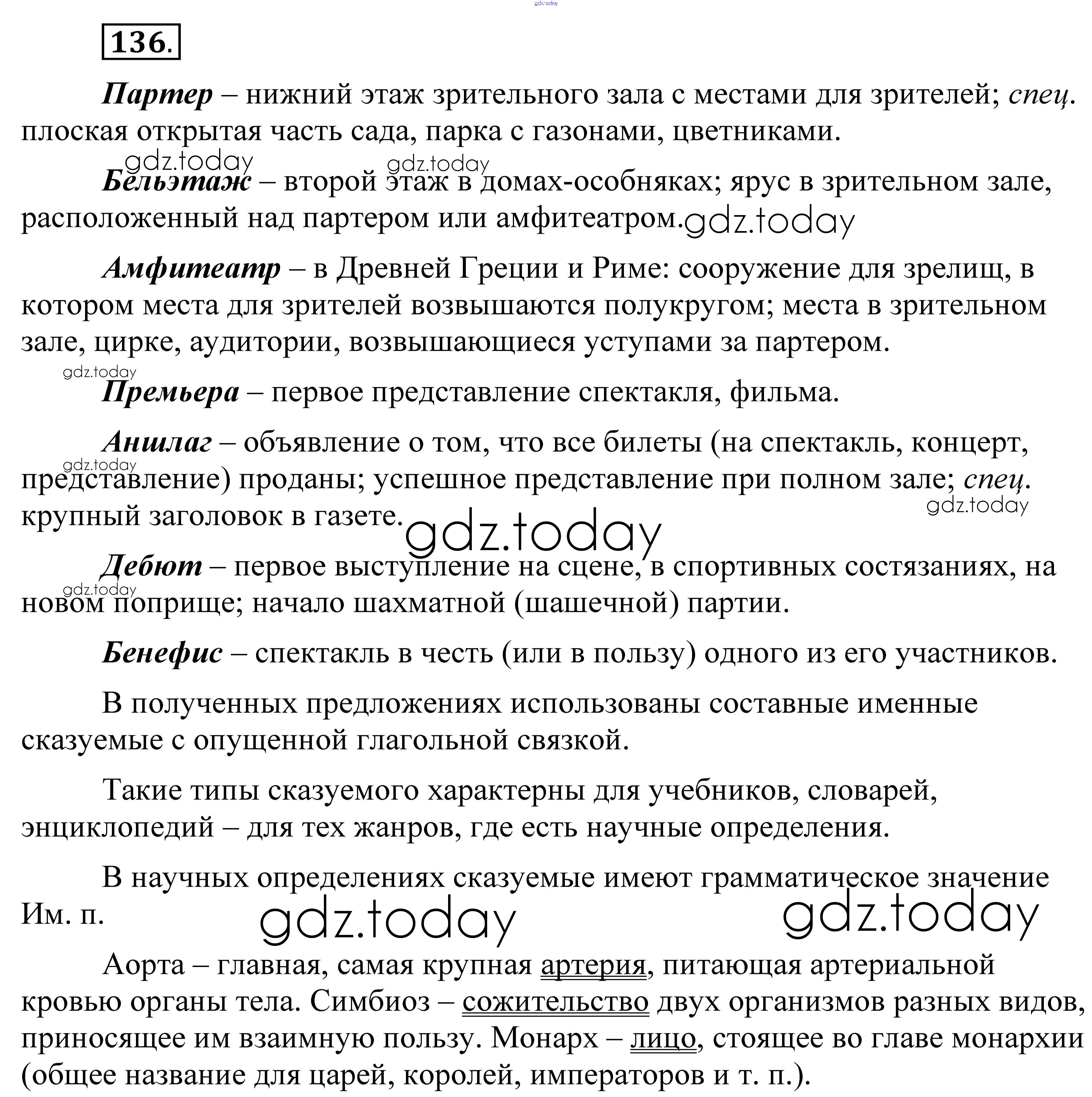 На страницах сайта gdz.today вы найдете учебный и вспомогательный материал, направленный на улучшения знаний школьной программы. ГДЗ - онлайн мир знаний Решение. Упражнения 136 Практике по Русскому языку для 8 класса Пичугов, Еремеева Дрофа, Дрофа Вертикаль 2016, 2022