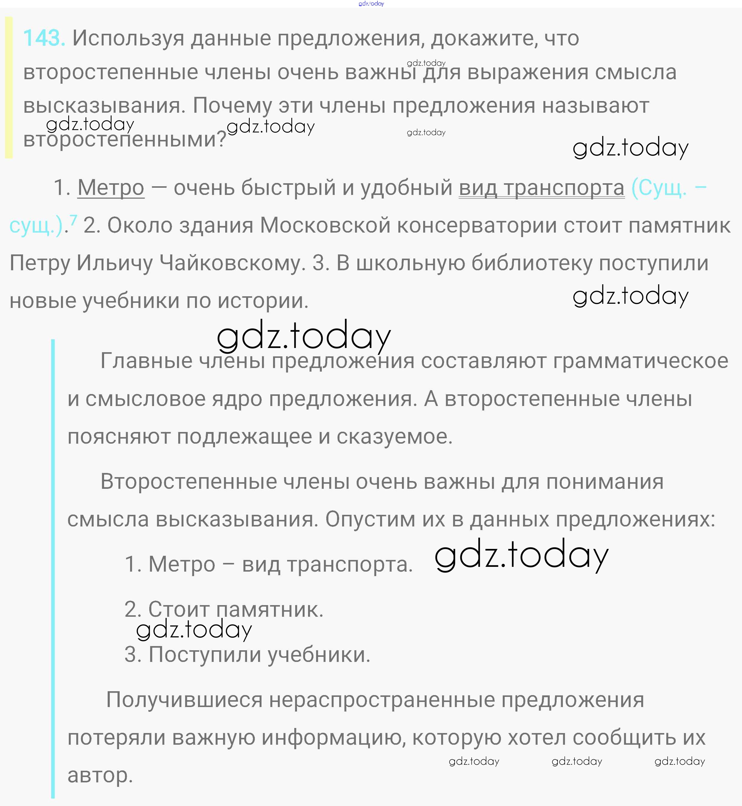 На страницах сайта gdz.today вы найдете учебный и вспомогательный материал, направленный на улучшения знаний школьной программы. ГДЗ - онлайн мир знаний Решение. Упражнения 143 Практике по Русскому языку для 8 класса Пичугов, Еремеева Дрофа, Дрофа Вертикаль 2016, 2022