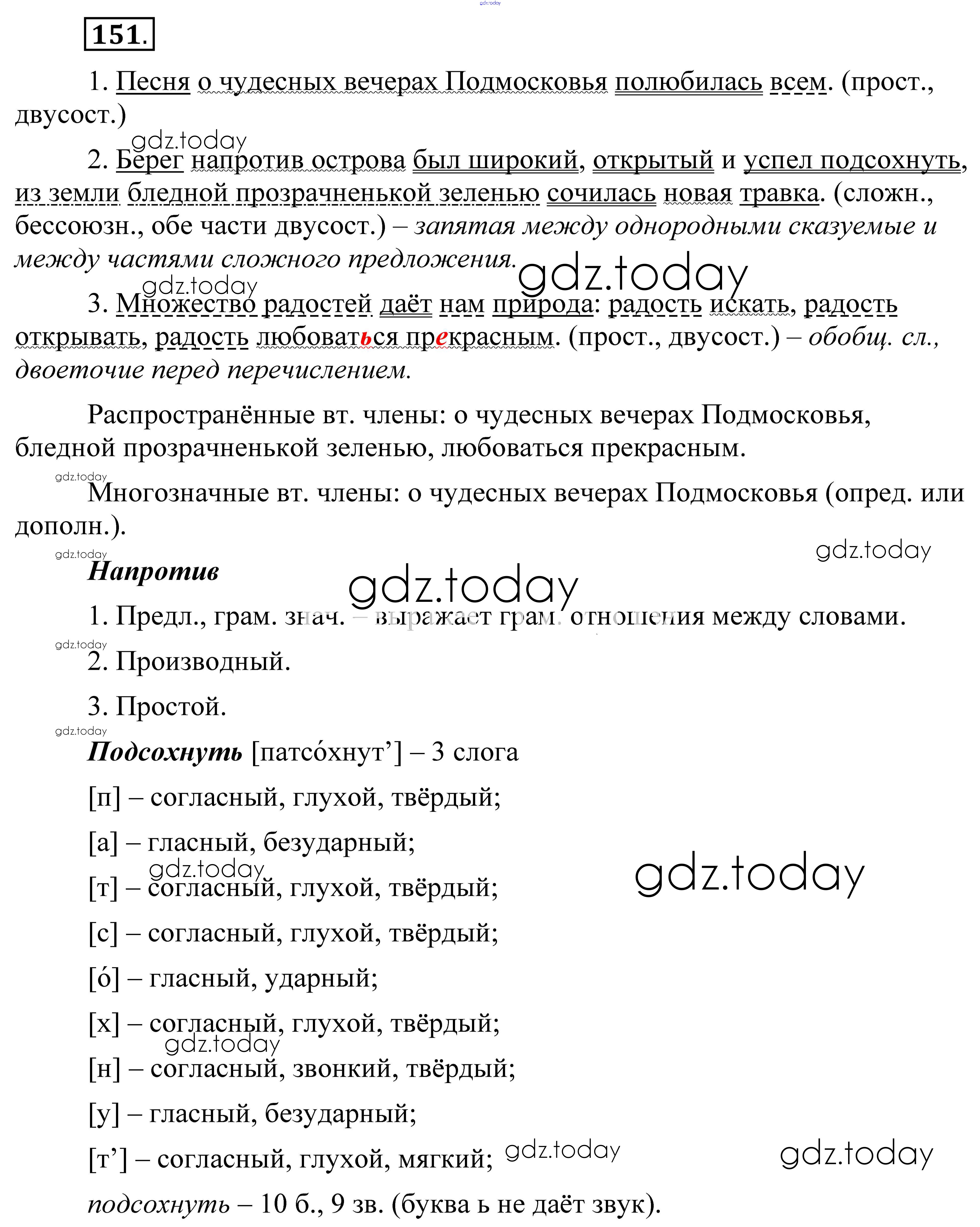 На страницах сайта gdz.today вы найдете учебный и вспомогательный материал, направленный на улучшения знаний школьной программы. ГДЗ - онлайн мир знаний Решение. Упражнения 151 Практике по Русскому языку для 8 класса Пичугов, Еремеева Дрофа, Дрофа Вертикаль 2016, 2022